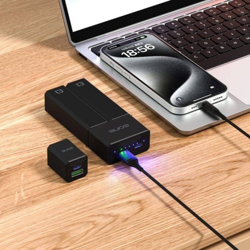 تصميـم مبتكـر مكـون مـن بطاريتيـن قابلتيـن للفصـل وإعـادة التركيـب ً تلتصقـان مغناطيسـيا بواجهـة شـحن بمنافـذ USB مدمجـة. ّ تبلـغ سـعة كل بطاريـة mAh5...
